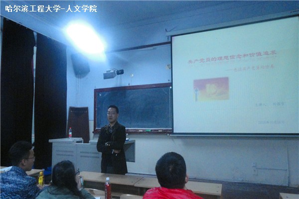 首先,刘振宇解释了“什么是社会主义,什么是共产主义”的基本问题,并且从中国近代的历史讲起,讲述了中国共产党拯救中国的伟大历史。接着他又着眼于现实,深刻剖析当代一些人丑化历史英雄的事例,使同学们深刻的认识到党课的重要性、深刻领悟到提高思想觉悟的紧迫性。随后,景杰从日常生活出发,从平常小事中透视当代一些人党性觉悟低,提醒同学们提高思想认识的紧迫性。最后,他又认真阐释了中国共产党的奋斗目标与中国梦,激励大家践行社会主义核心价值观。