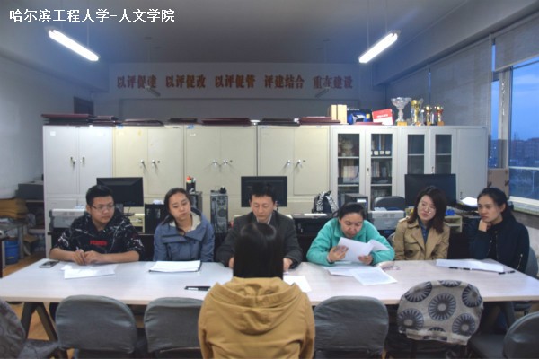 (宣传中心记者团记者薛莹、王元娇报道)4月25日晚6时30分,人文社会科学学院、马克思主义学院于主楼321组织校优秀毕业生面试。人文社会科学学院马克思主义学院党委副书记曹景杰、辅导员李瑶、班主任代表李艳春、学生代表刘春蕾、张书、张奕柠担任评委。