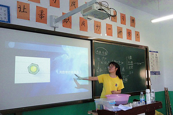 (宣传中心记者团记者 房仕琪报道)7月6日上午10时,学院“亲密行动”暑期社会实践团于黑龙江省密山市兴凯湖中学七年级二班开展课外拓展科普讲座,本次讲座由实践团成员吴静怡担任主讲人,七年级二班全体同学及实践团部分成员参与此次讲座。