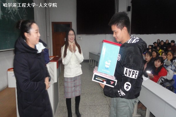颁奖大会开始。首先,总分、科目第一詹绍庆、刘俊辰、郭倍宁等同学上台领奖。接着,他们分别发表了获奖感言并与同学们分享学习经验与做题技巧。最后,李瑶老师针对期中考试的情况进行总结,希望全体同学们在榜样的带动下,更加积极主动地投入到期末复习中,并在期末考试中取得优异成绩。
