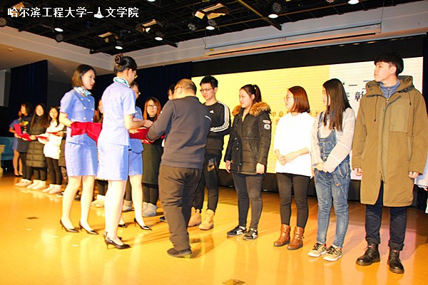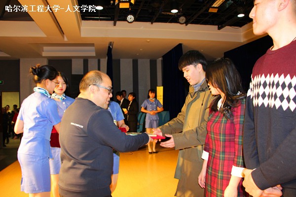 活动开始,首先主持人宣布学生获奖名单,随后同学们上台领奖,并由陈斌进行颁奖。颁奖结束后,陈斌与同学们合影留念。