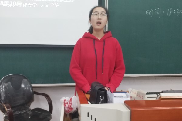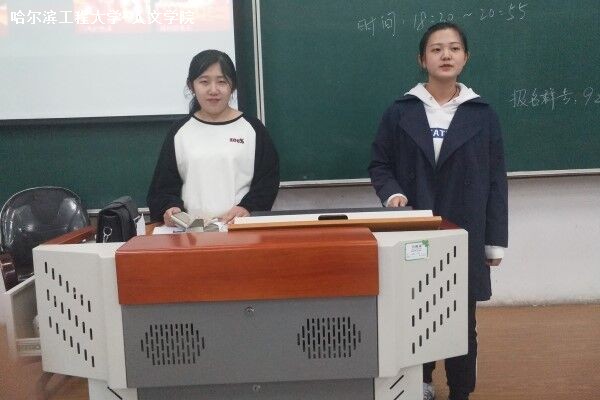 宣讲会伊始刘姝彤、刘晨语作为主持人上台为大家介绍家乡展示会相关情况。刘姝彤、刘晨语相互配合向大家着重介绍了参赛要求和奖项设置,以此激励大家积极参与;接着由去年家乡展示会比赛第一名周涵作为代表上台讲话,她给予了大家技术方面的指导,并且建议大家要能体现出自己家乡的特色;最后,刘姝彤、刘晨语从“情”的角度鼓励大家踊跃地报名参加,并进行总结。