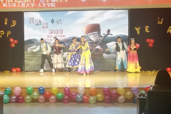 期间工作人员进行了现场抽奖,并带领在场师生进行有趣的游戏;然后班主任侯博文老师为大家献上一首独唱串烧《慢慢+祝福》,把自己对学生们热忱的期望通过歌声表达了出来;夏娜・艾则孜江、也热克・江勒别克等同学为大家表演民族舞串烧,带领大家领略独特的异域风情;刘爽、于美姣共同为大家表演电子琴独奏《遇见》,宋泽恩与魏卓然、詹绍庆分别为大家带来吉他弹唱《后来》与尤克里里弹唱《我乐意》;康澳非、王庆华、薛亚超、林洋、王思源、王宇斐、胡紫林为大家表演了精心编排的小品《四大才子》,引来在场观众的一片笑语。