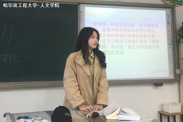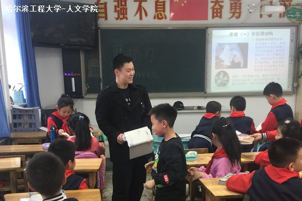 活动伊始,周俊辰为同学们讲解了有关摩擦力的题,向同学们提出问题并给予奖励,调动同学们对科学知识的兴趣;然后,周俊辰为学生详细讲解了摩擦力的相关知识,并将两本书重叠放在一起体验摩擦力,让同学们体验到日常生活中摩擦力,以便于同学们对摩擦力进一步了解;最后,周俊辰为同学们讲述了关于生活中的摩擦力。
