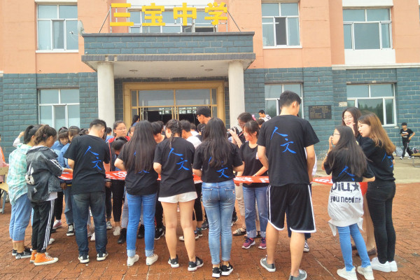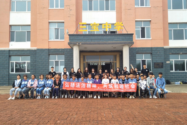 (宣传中心记者团记者 姜爱华报道)7月6日下午3时,新捕京3522com“三下乡”暑期社会实践团于三宝中学开展“弘扬法治精神,共筑和谐社会”普法宣传条幅签字活动。三岔村三宝中学全体师生及社会实践团全体成员参与本此活动。
