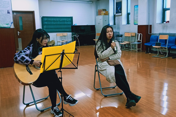 彩排伊始,全体人文学院学生会成员进行相关准备,各部门进行协商;接着,各班及个人节目表演按照流程进行;最后,张孟圆一一指出各班及个人表演的不足并给予改进意见。