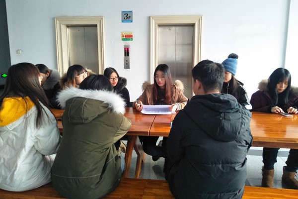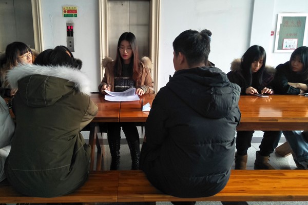 (学生会 王思源报道)12月24日下午3时30分,人文学院学生会、宣传中心于主楼三楼中厅开展例会。学生会、宣传中心负责人贺惠辅导员担任此次例会的主讲人,学生会、宣传中心全体部长级以上人员参与此次例会。