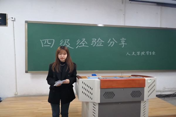 活动开始,首先由王根介绍了四级考试的分值分布情况,让各位同学对题型有所了解,提醒到做题需讲究时间的分配,并强调了真题的重要性;第二位主讲人杜思蒙主要分享了听力、阅读及写作方面的经验,她认为多听真题听力对提高听力作用非常显著,并且强调了积累词汇及写作逻辑的重要性。