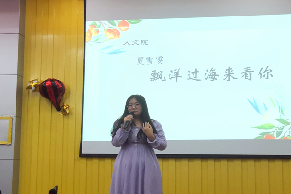 本次比赛分为清唱和伴奏独唱两个环节。参赛选手们歌声婉转动听,歌曲各具特色,既有慷慨激昂的历史歌曲,又有悠扬悦耳的现代情歌。在第一轮清唱环节中,新捕京3522com的夏雪雯、张海骄、陈醒三位同学脱颖而出晋级八强。随后在第二轮的伴奏独唱环节中,夏雪雯同学演唱的《不老梦》细腻温柔、洋洋盈耳,感染了在场所有听众,顺利取得新捕京3522com唯一一个直通十佳歌手半决赛的名额。最后,比赛在欢声笑语中落下帷幕。