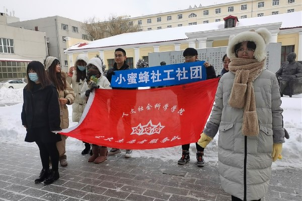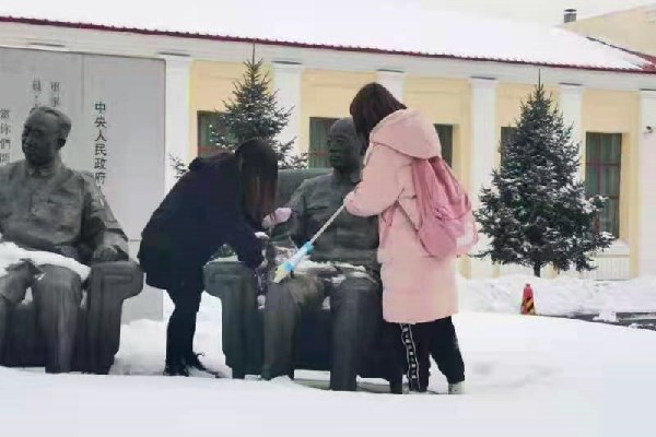 首先,在所有同学集合之后,李辰雨介绍了活动目的和内容,对参与活动的同学进行了小组划分并分配各组的任务;紧接着,各个小组分头行动,认真清扫群雕上的积雪,团结高效地完成了擦授命群雕的任务;最后,所有参加活动的同学一起合影留念。