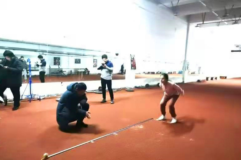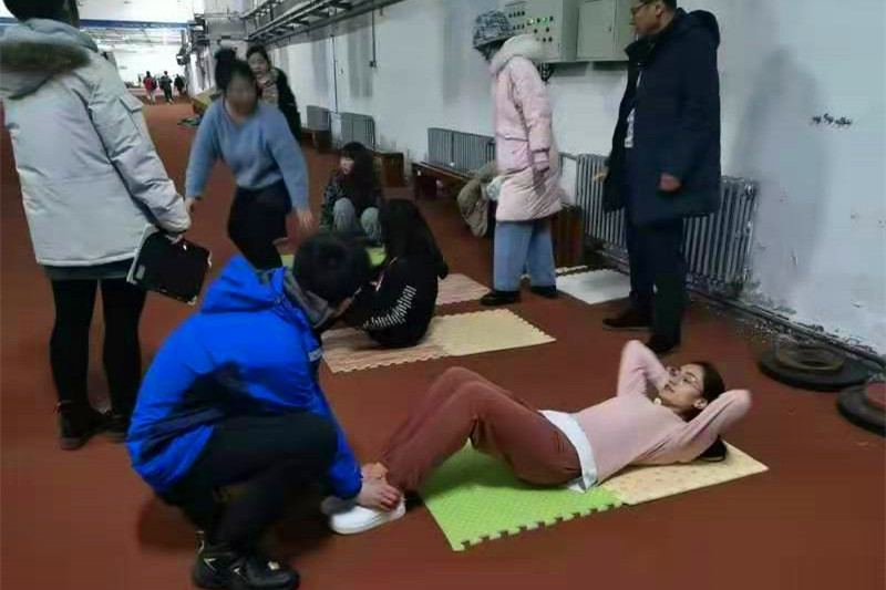 体测辅导开始,学生在体育教练的带领下进行慢跑,压腿等准备性活动,并认真学习相关体育知识;随后,学生们依次有序进行体测补测。