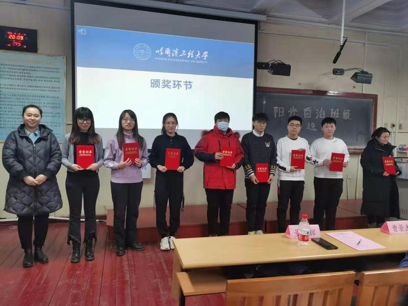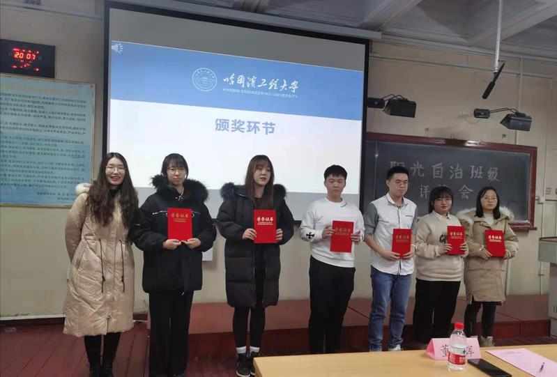 紧接着,由评委进行打分;随后,由董春辉、李瑶、贺惠分别对荣获优秀个人和优秀自管小组长的同学进行颁奖;最后,由曹景杰对获得“阳光自治班级”称号的班级颁奖并进行活动总结,强调了班风建设,同时表达了对同学们未来班级建设和个人发展的美好期待。