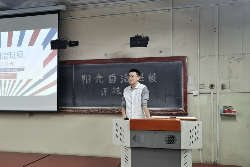 (宣传中心记者团记者 谢梦璇、刘佳彬报道)12月15日晚6时30分,新捕京3522com团委组织部于11号楼133教室举办“阳光自治班级”评选会。此次评选由赵欣淼、韩一公主持,新捕京3522com党委副书记曹景杰、学工办主任董春辉、团委书记李瑶、辅导员贺惠担任评委。大一全体学生及大二大三部分学生参加活动,大二及大三共八个班级参与评选。