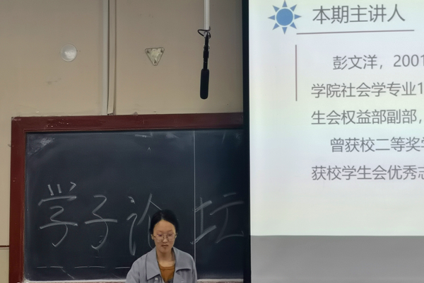 (宣传中心记者团记者 谢梦璇、赵美怡报道)4月16日晚6时30分,由校学生会权益部主办,新捕京3522com学生会协办的学子论坛活动于11号楼0132教室开展。新捕京3522com学生会代表彭文洋担任主讲人,新捕京3522com20级部分学生参加此次活动。