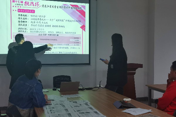 会议伊始,李瑶讲解“挑战杯”赛事的注意事项与相关要求;随后,参赛成员向老师展示项目并进行答辩;最后,老师们从项目的现场设计和现场答辩的角度对参赛成员提供有效的建议与指导。