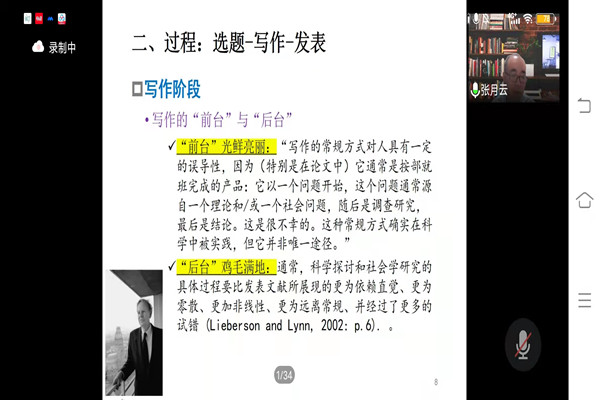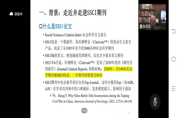 (宣传中心记者团记者 曾诗妤、董昕瑶报道)11月28日下午1时30分,新捕京3522com于腾讯会议平台线上举办以“结构SSCI论文发表迷思”为主题的研究生学术讲座。该讲座由社会学系讲师侯博文担任主持人,山东大学哲学与社会发展学院社会学系副教授张月云担任主讲人,新捕京3522com全体研究生参与。