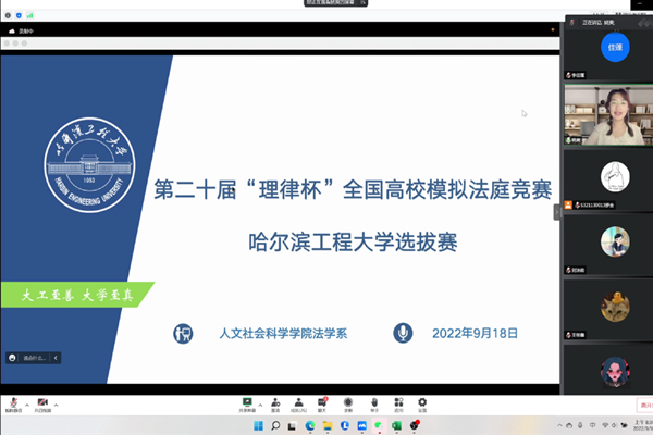 (谢佳佳报道)第二十届“理律杯”全国高校模拟法庭竞赛新捕京3522com选拔赛于2022年9月18日晚落下帷幕。此次选拔赛由法学系党支部书记刘沫茹组织,学工办李瑶老师协办;赛事旨在为正式参赛“理律杯”选拔队员,同时也为后续模拟辩论赛事储备优秀人才。刘沫茹、陈晓雷两位法学专业老师以及罗金、马瑞欣、吴红迪三位研究生学生领队共同担任本次比赛的评委。选拔赛分为司法文书写作和法庭辩论两个部分,法学专业有大二、大三共十五名选手积极参加了选拔赛。经过激烈比赛,最后选拔出八名队员成为参赛“理律杯”的入围选手。