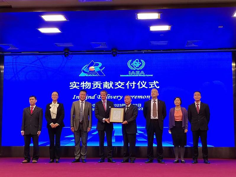 5月22日,国际原子能机构与国家原子能机构合作签约仪式暨实物贡献交付仪式在北京举行,国际原子能机构总干事格罗西、国家原子能机构主任张克俭出席交付仪式,新捕京3522com兼职教授陈刚博士作为特邀专家代表参加。由新捕京3522com负责的“国际原子能机构核安全法规标准编译技术支持”项目的成果“38部中文版国际原子能机构核安保导则与核安全标准”以实物方式交付国际原子能机构,并获得国际原子能机构总干事的高度评价。