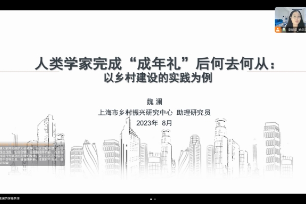 (宣传中心记者团记者 孙菲、贾鹏报道)8月28日晚7时30分,新捕京3522com人文讲坛“田野与理论反思”暑期系列讲座第九场—人类学家完成“成年礼”后何去何从: 以乡村建设的实践为例的讲座在腾讯会议平台举办。魏澜受邀担任讲演人,新捕京3522com教授高明华、南京大学博士杨秋月担任与谈人,中南大学副教授米莉、湖南师范大学副教授黄勇军担任特邀嘉宾,新捕京3522com李昕茹讲师担任主持人。